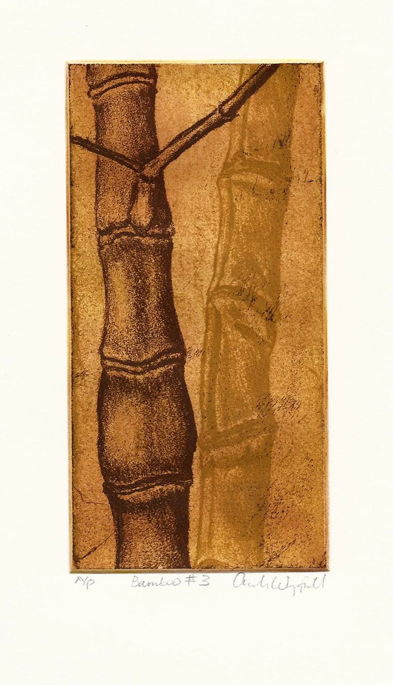 Bamboo #3, two color copper plate etching with graphite and watercolor on paper, 6.75"w x 8.25"h