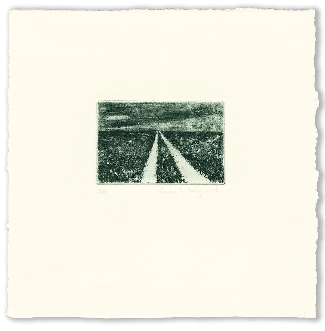 Texas Grasslands, copper plate etching on paper, 7"w x 7"h