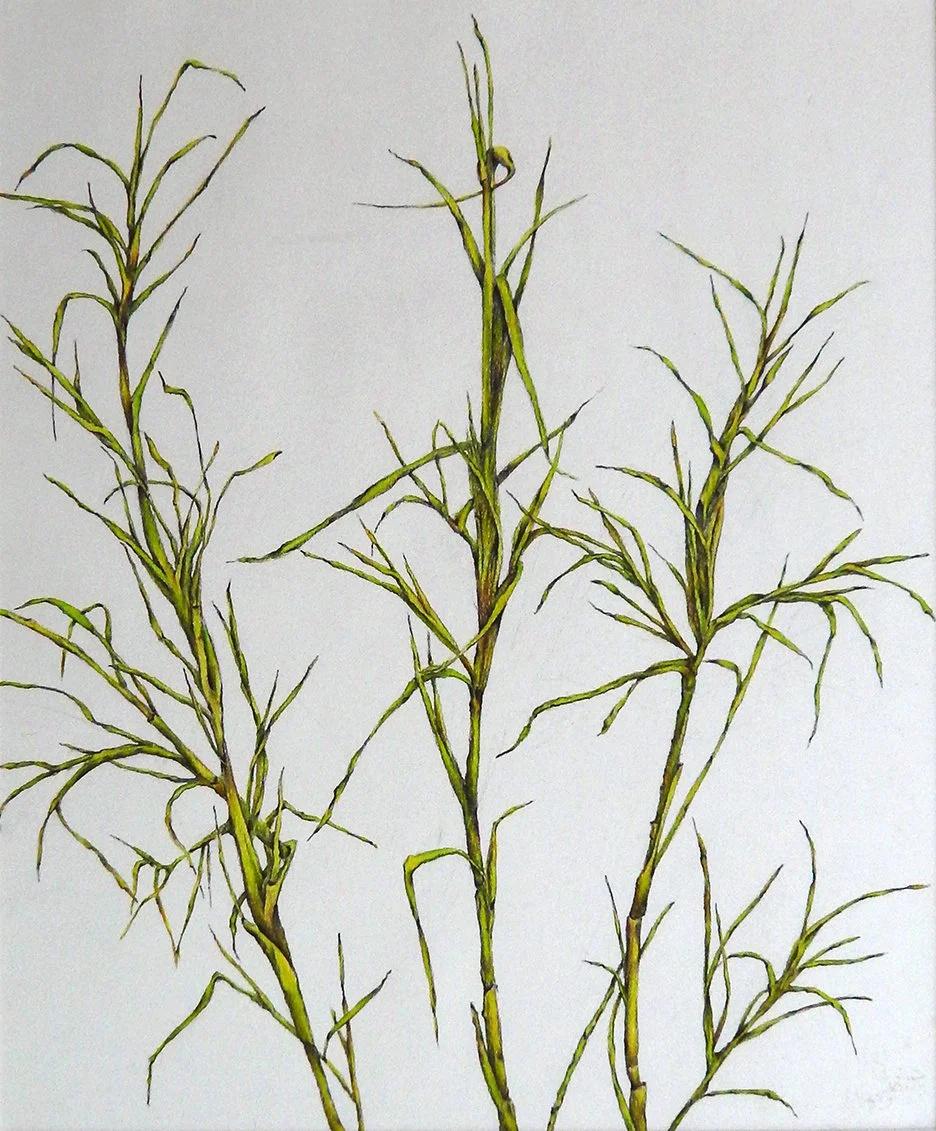 Bamboo Muhly, graphite and colored pencil on paper, 14"w x 17"h
